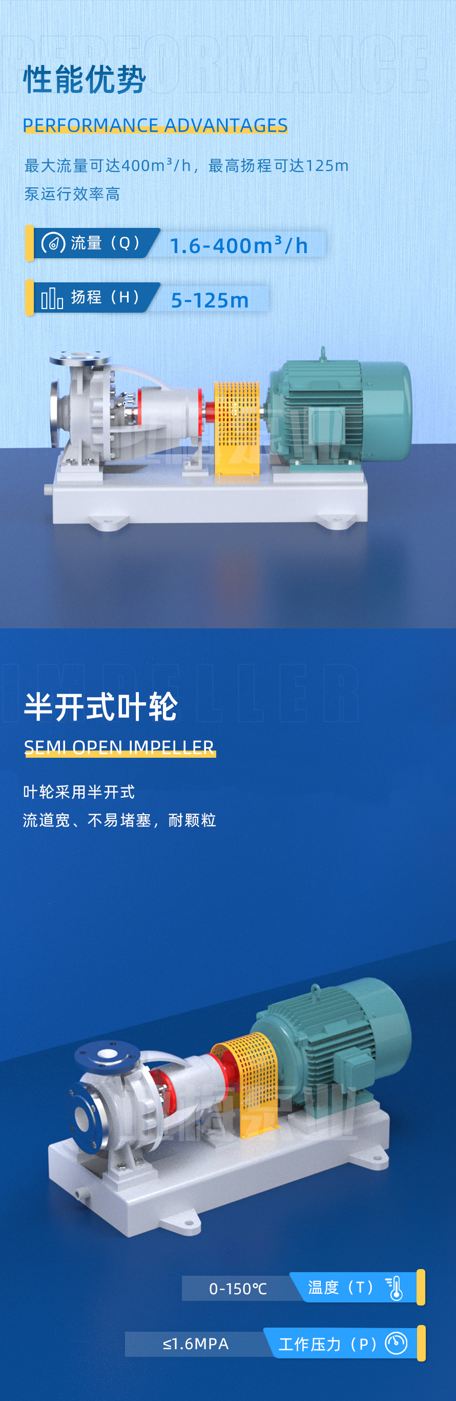 YMGW系列尿素熔融高溫泵,是我公司根據化肥行業特殊工段上輸送高溫介質或低溫易結晶易固化介質的需要,研制而成的一種單級單吸化工離心泵。