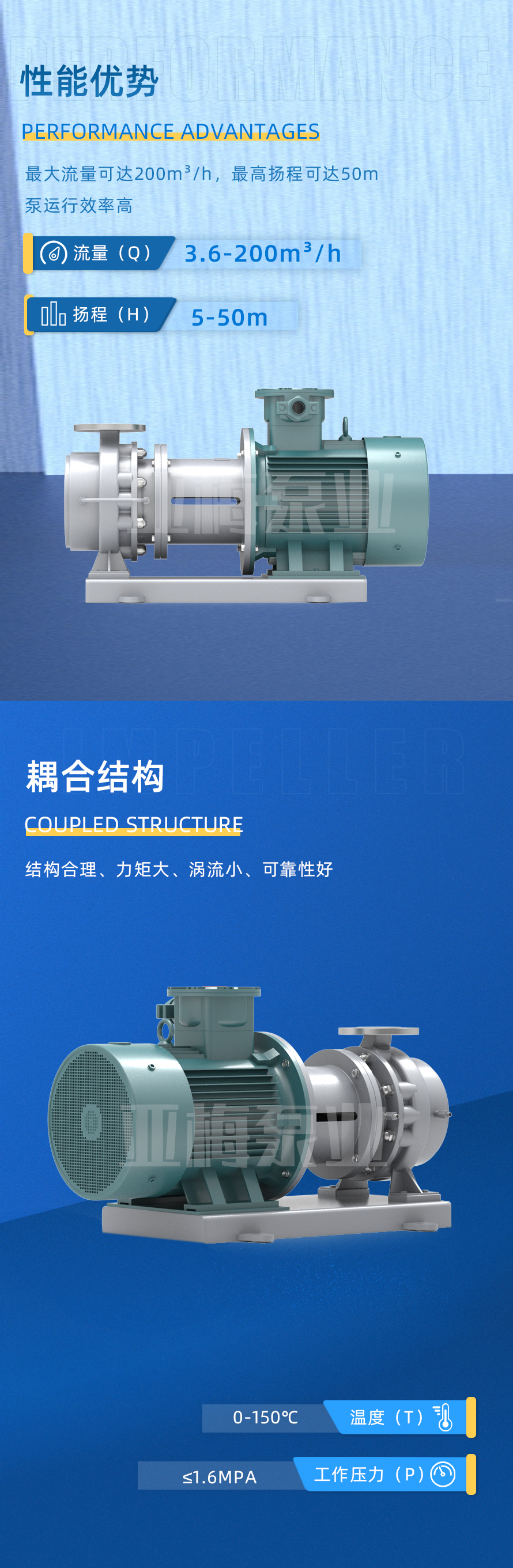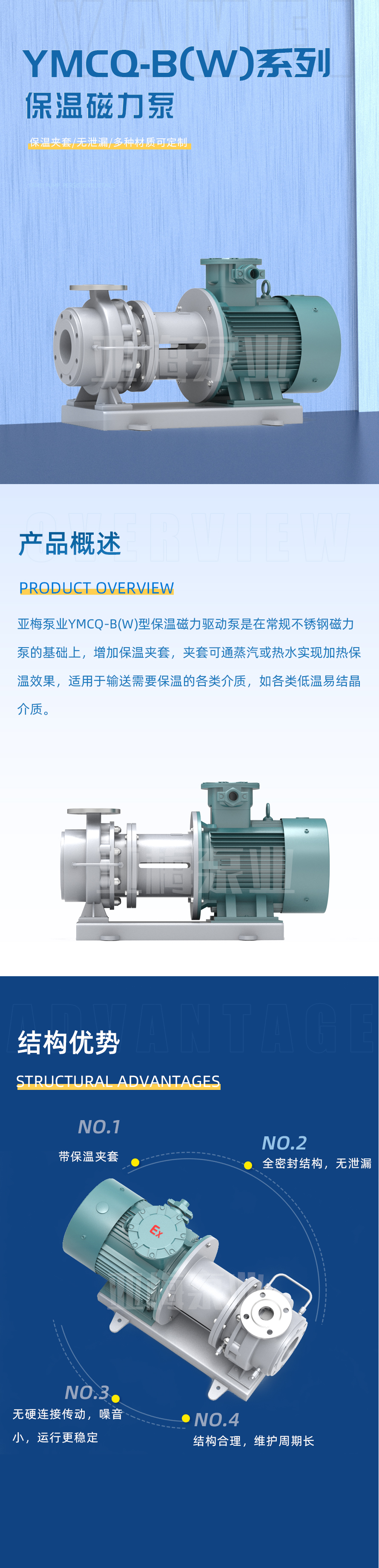 亞梅泵業YMCQ系列磁力驅動泵是將永磁聯軸器的工作原理用于離心泵的高科技產品,設計合理,工藝先進,具有全密封,無泄漏,耐腐蝕等特點。